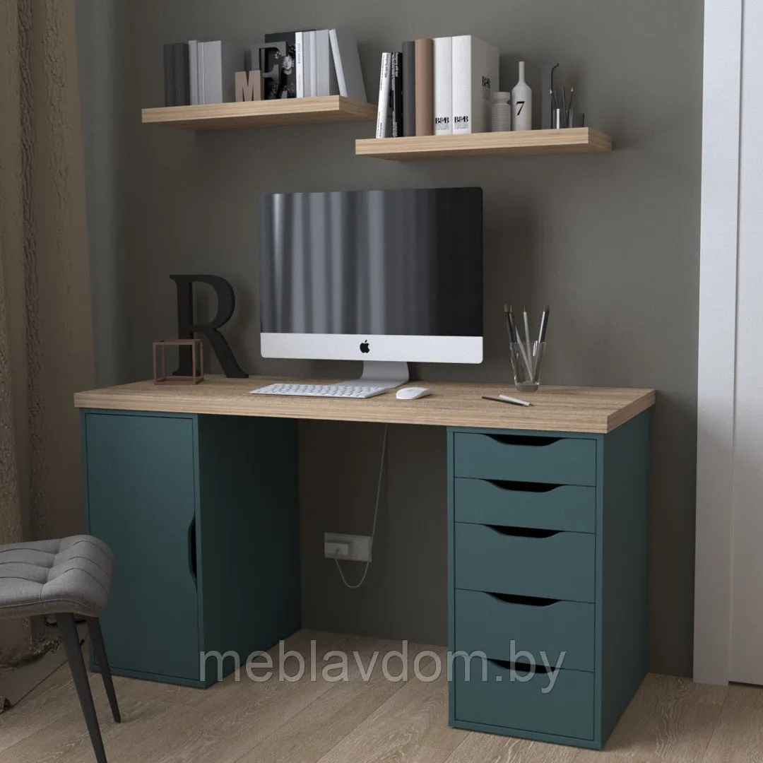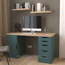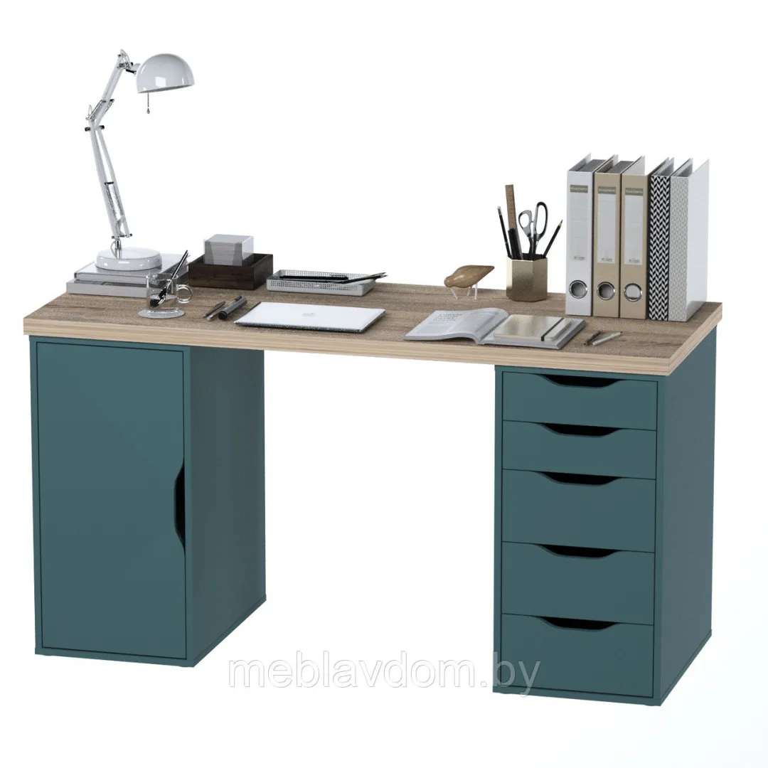 Стол письменный ИНГАР 2/5/ДВ (дуб беленый/серо-бирюзовый)